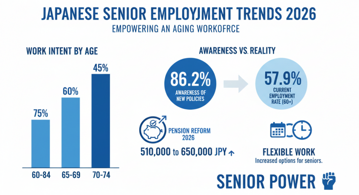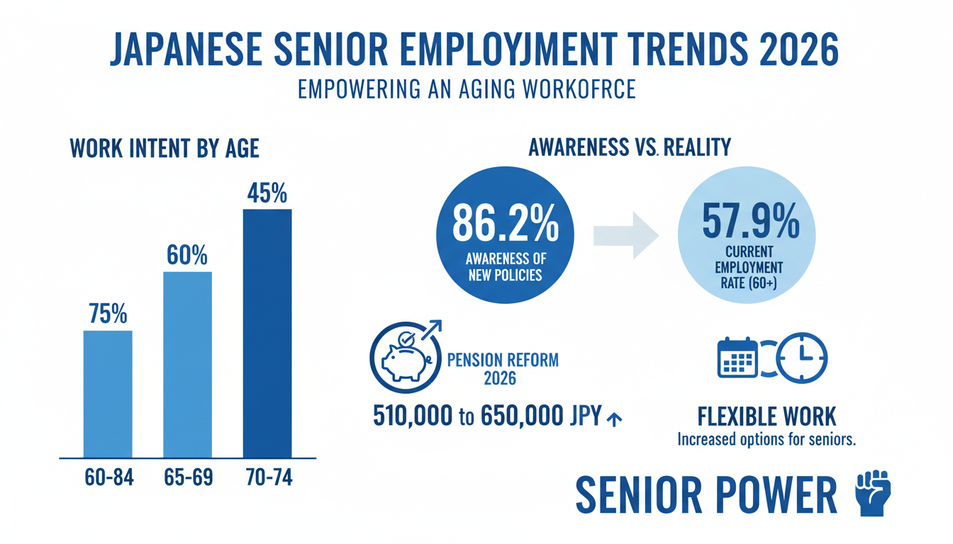일본의 시니어 인재 서비스 기업 마이스터60이 60~74세 시니어 1,000명을 대상으로 2026년 4월 예정된 재직노령연금 제도 개정에 따른 취업 의식 조사를 실시했습니다. 초고령사회에 먼저 진입한 일본의 연금 제도 변화와 이에 따른 시니어들의 반응은 유사한 인구 구조 변화를 겪고 있는 한국 사회에도 중요한 시사점을 제공합니다.