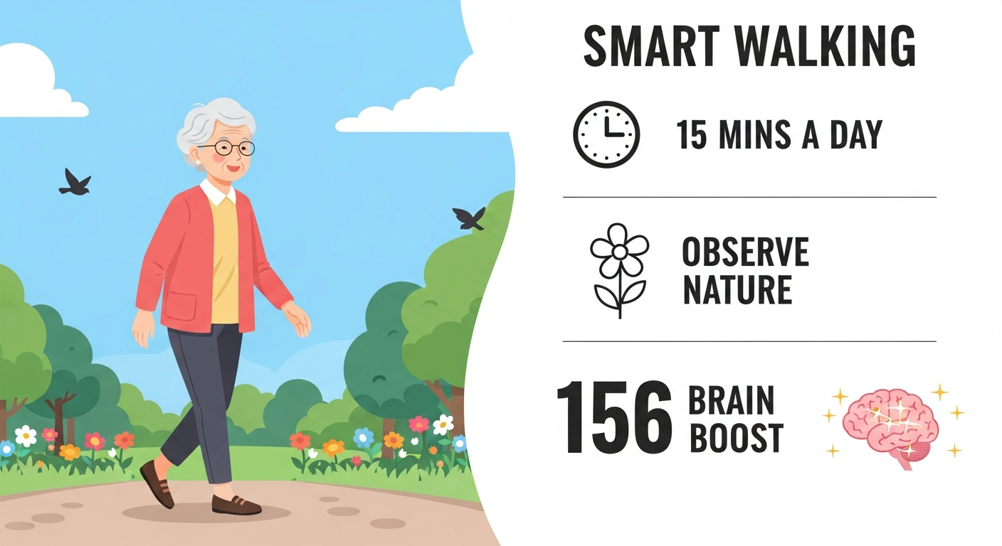 산책이 뇌 활성화와 치매 예방에 미치는 영향은 객관적인 연구 결과로도 뒷받침됩니다. 도쿄도 건강장수 의료센터의 연구에 따르면, 일주일에 90분(하루 평균 약 15분) 정도 걷는 시니어는 일주일에 40분 미만으로 걷는 이들에 비해 인지 기능 테스트 결과가 더 우수한 것으로 밝혀졌습니다.