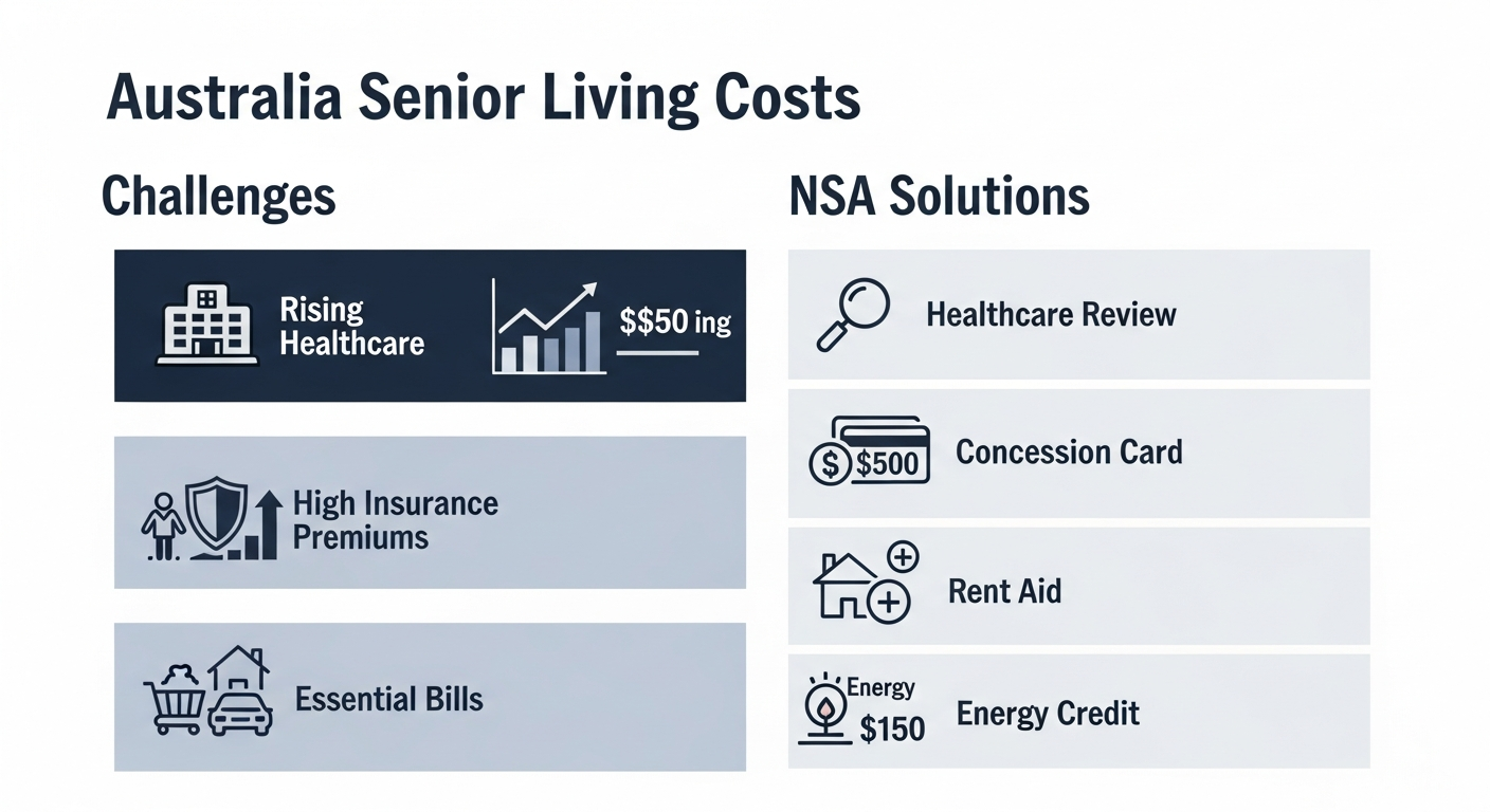 국가 시니어스 호주(NSA)가 2026년 2월에 실시한 최근 사회 조사에 따르면, 연금을 유일한 소득원으로 의존하는 고령층은 향후 12개월 동안 에너지 및 보험 비용을 감당할 수 있을지에 대해 가장 크게 우려하고 있습니다. 연금과 개인 소득을 함께 받거나 자립형 퇴직자인 사람들은 개인 건강 보험료를 감당할 능력에 대해 가장 큰 걱정을 하고 있으며, NSA는 이러한 압박을 직접적으로 완화할 과감하고 실용적인 개혁을 연방 예산안 제출을 통해 요구하고 있습니다.