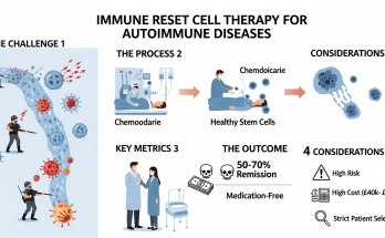 영국 연구, 자가면역질환 ‘면역 리셋’ 세포 치료 가능성 제시 영국 연구진이 자가면역질환을 치료하는 새로운 접근 방식으로 ‘면역 리셋’ 세포 치료법의 잠재력을 제시했습니다. 이 치료법은 만성적이고 심각한 자가면역질환으로 고통받는 환자들에게 장기적인 …