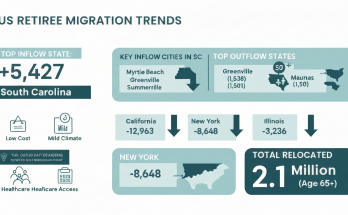 미국 사우스캐롤라이나, 은퇴자 순유입 1위 기록 미국의 사우스캐롤라이나 주가 은퇴자들이 가장 선호하는 정착지로 부상하며 순유입 1위를 기록했습니다. 온라인 이주 서비스 기업 ‘Hire a Helper’의 2월 연구에 따르면, 지난해 210만 명 …